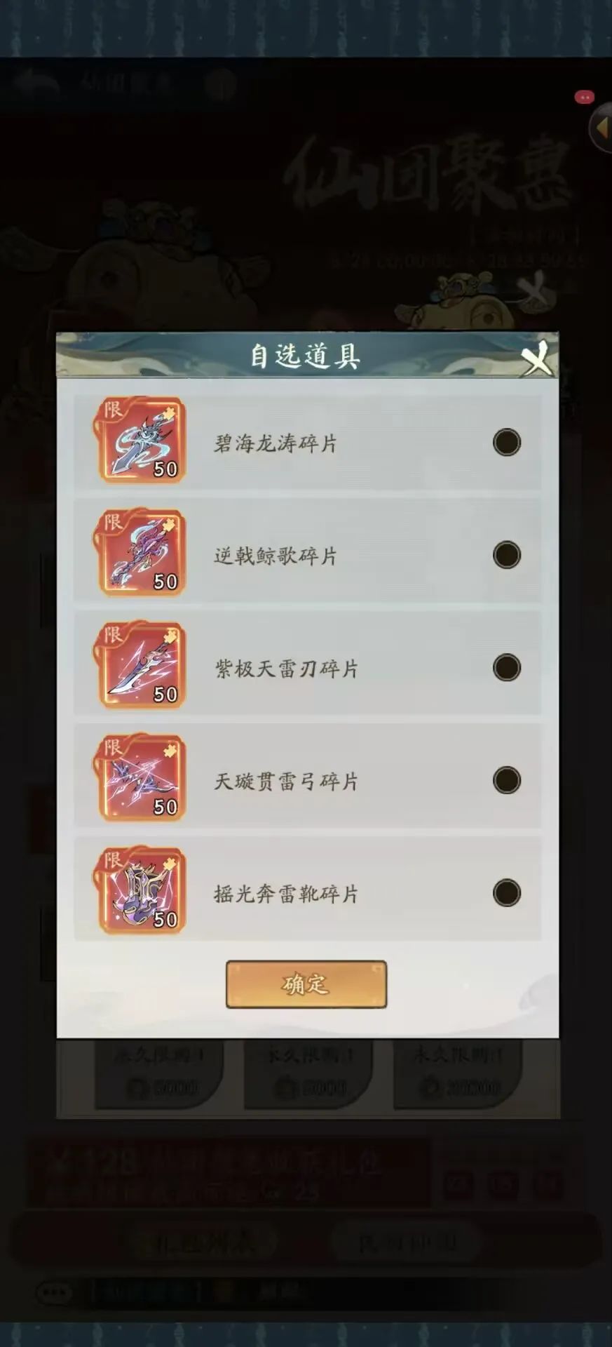 商店兑换:兑换老板娘皮肤+座驾+自选异兽碎片*100+自选神话法宝碎片*50,剩余的仙团币可换自己缺的材料。