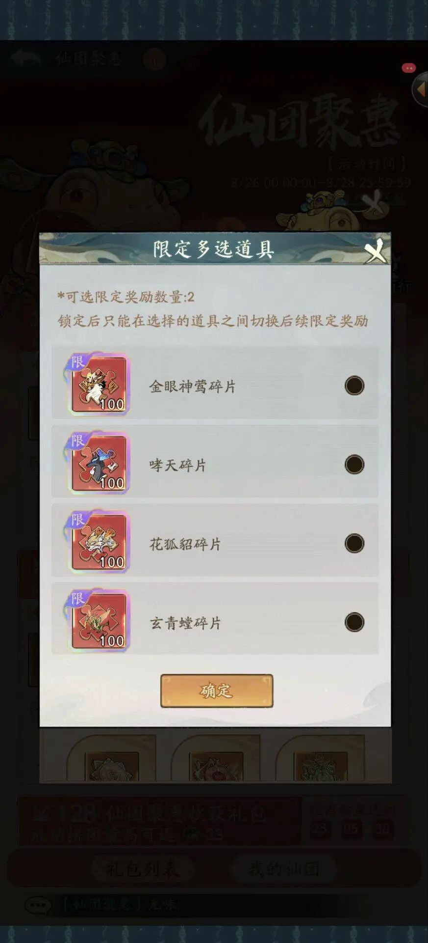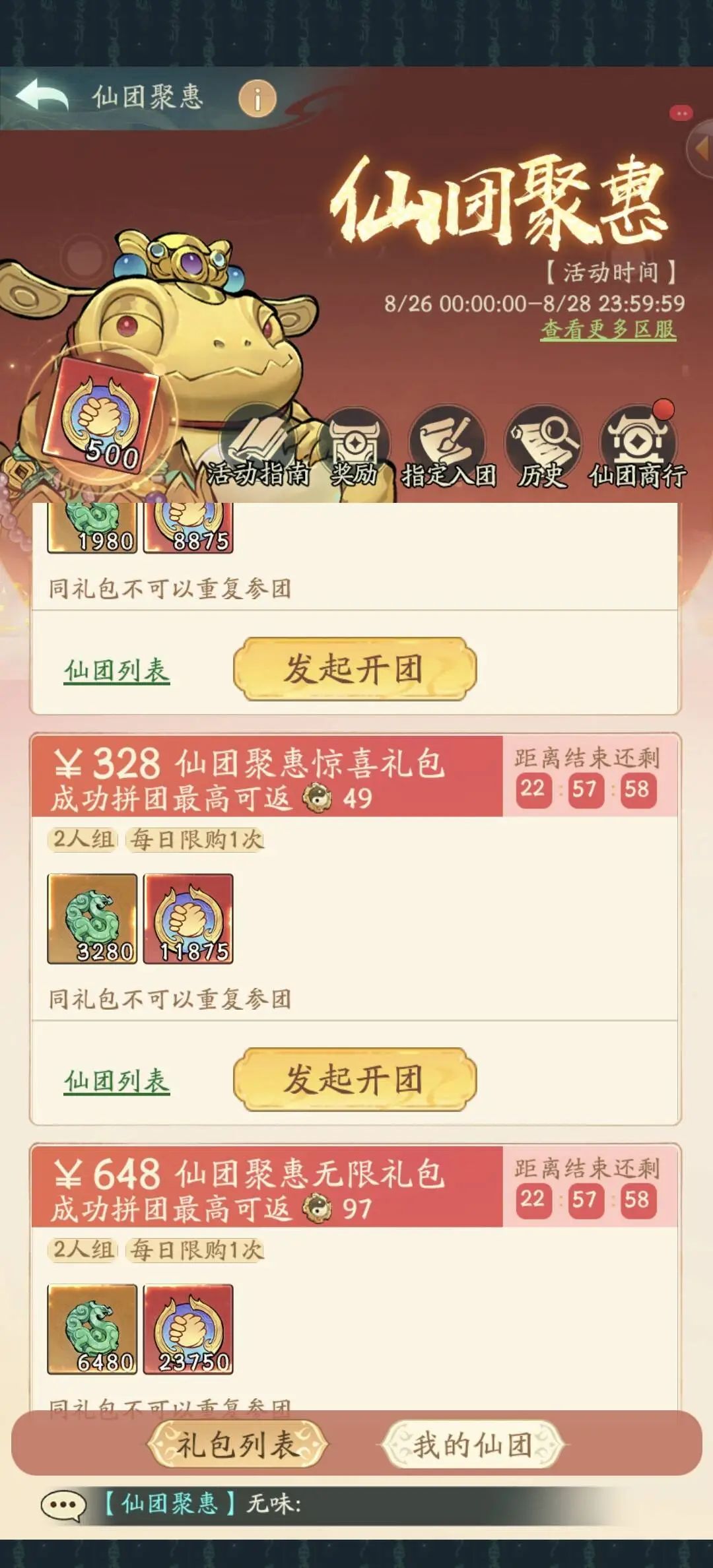 返利:组队满返利200机缘,抵1个128和2个30礼包