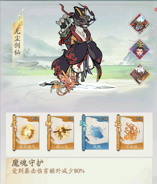 • 攻击方式:由于无尘剑仙的神通多为减伤神通,前中期减伤不够很容易被秒,根据自己的情况补充复活,回复等精怪神通即可。