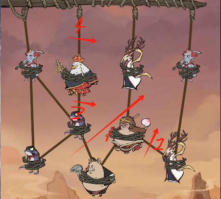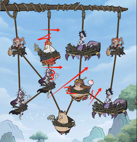▶ 四师徒相遇总计5关,需要解救西游师徒几人,保证妖怪不掉落在地,则可通关