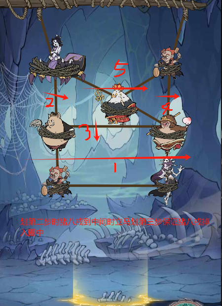 ▶ 三打白骨精总计5关,此5关悟空会在地下画上金刚圈,师徒几人需要落入金刚圈中,妖怪可以落在圈外,不会导致失败,落入圈内则会失败,师徒全部落入金刚圈内则可通关