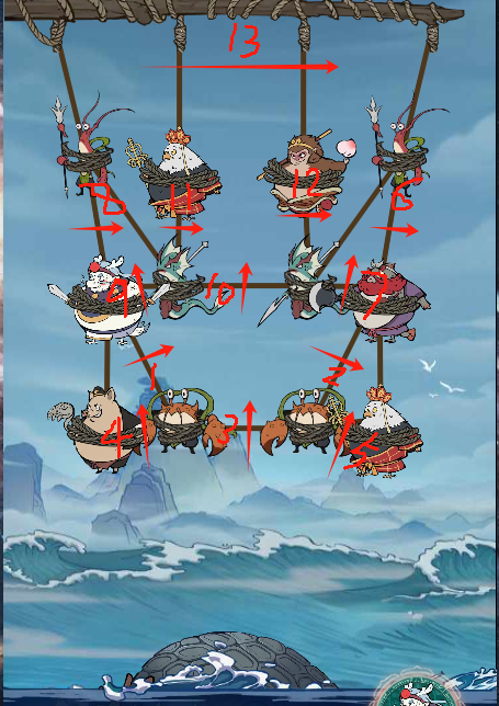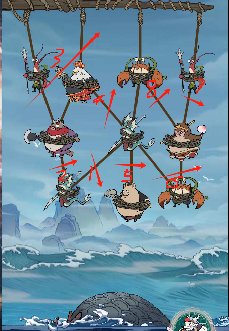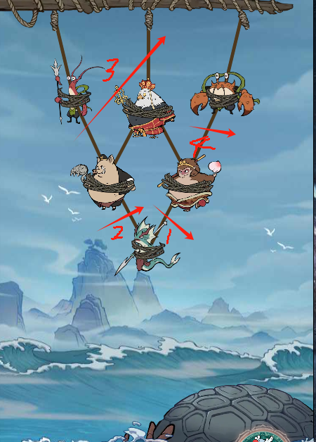 ▶ 通天河总计5关,此5关师徒几人与妖怪掉入河中会死亡,所以可以利用河水击败妖怪,解救师徒几人到乌龟背上,则可通关