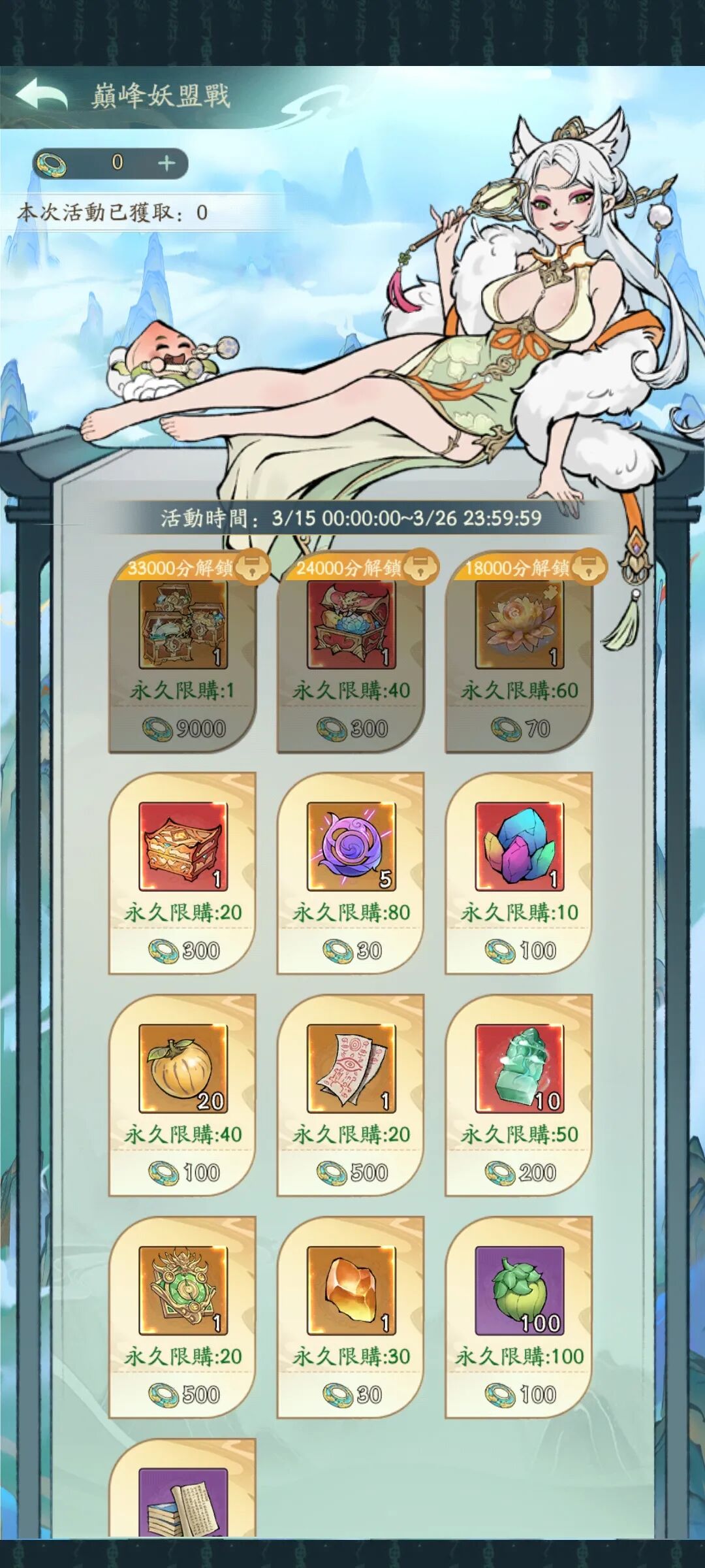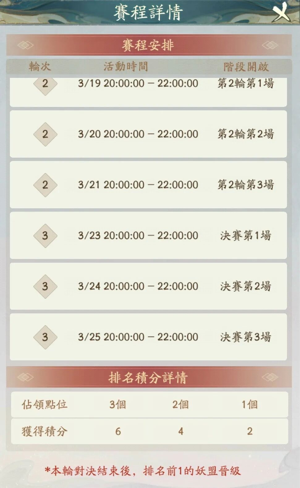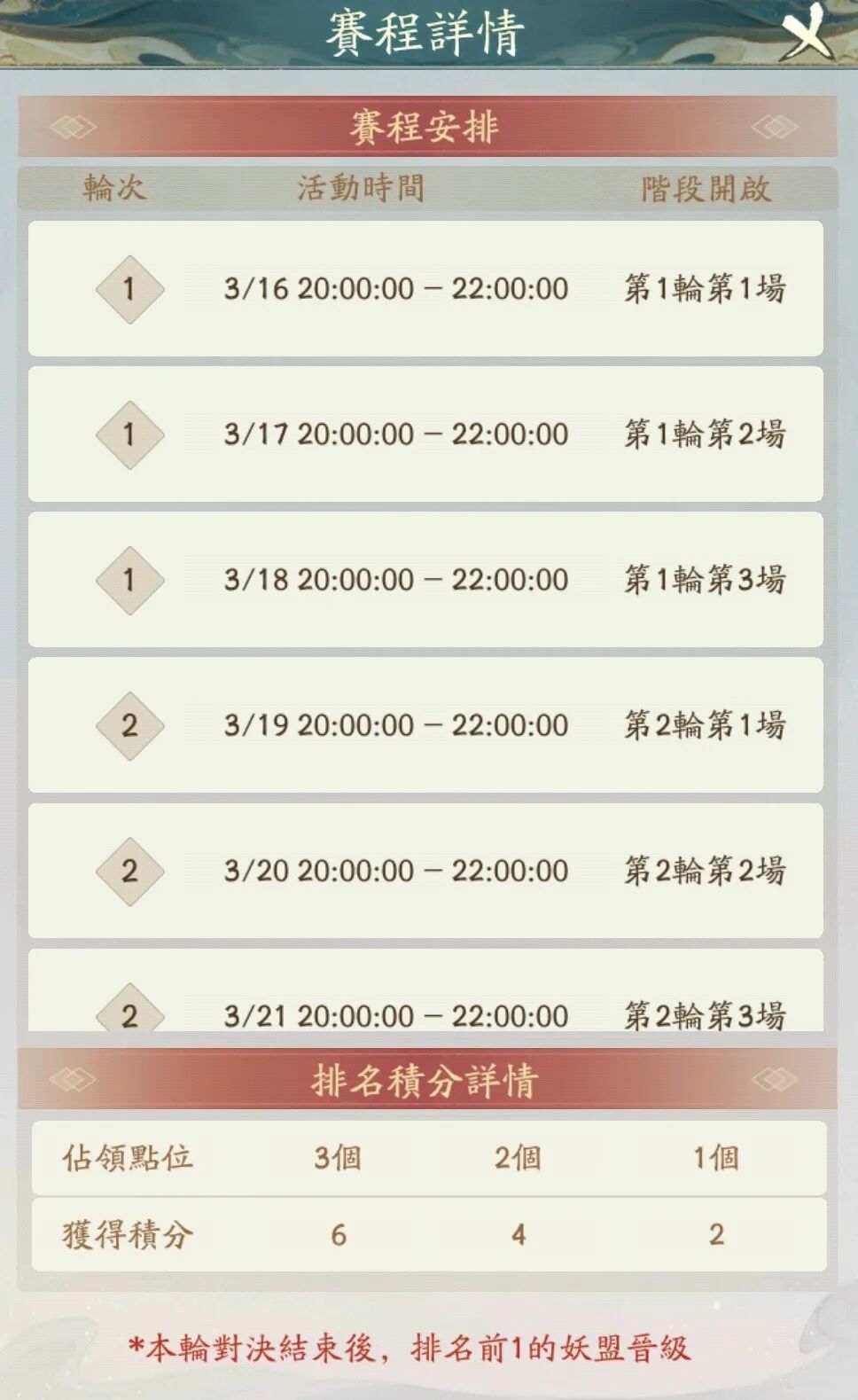 – 妖力前32名妖盟可参加活动。