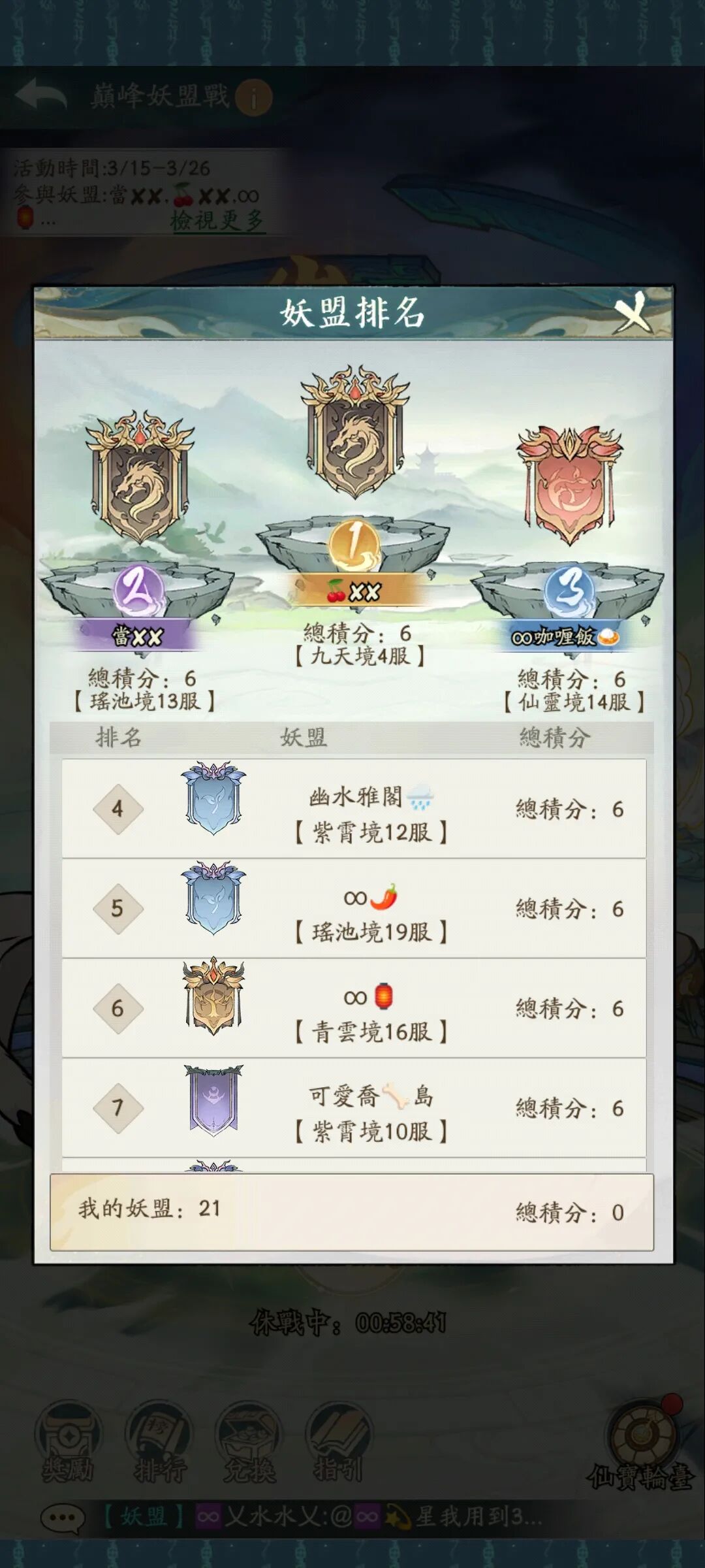 – 分组结束前5分钟更换妖盟和妖盟职位将不会生效。