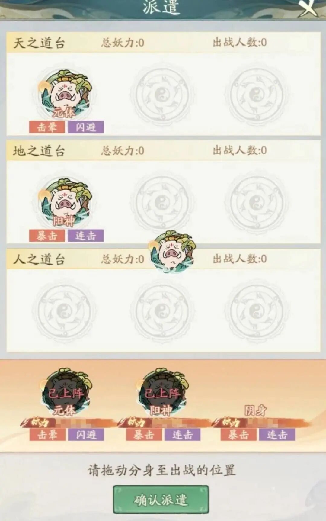 1. 备战期:妖盟成员可派遣自己的分身至3个道台中的任意1个道台进行作战。