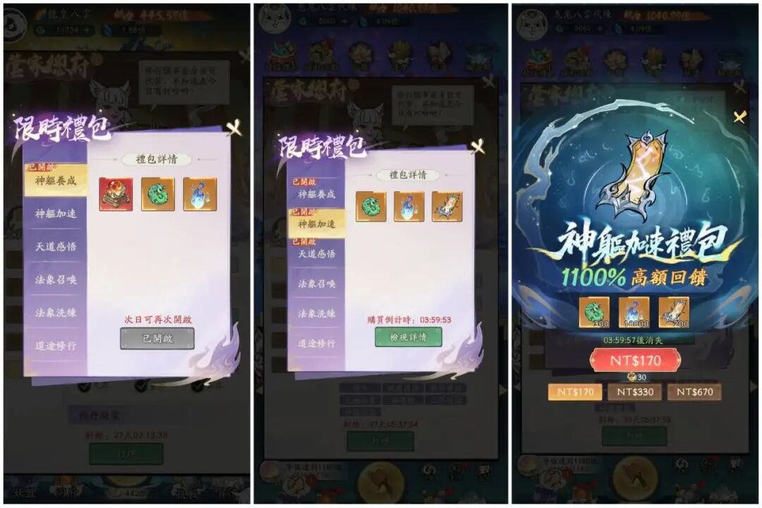 活动预计3天,有妖盟排行榜和个人排行榜,每天会有免费体力或者次数,仙玉礼包为加速礼包,氪金道具为加速道具以及仙玉和其他道具附赠,白嫖和拉玉的玩家大概能跑个单局1000米,氪金加速可以单局跑的更远。