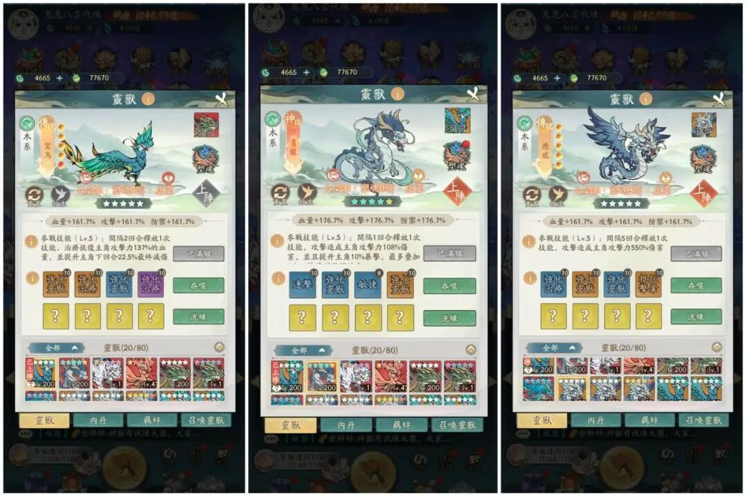 灵兽界面每个灵兽的派系增加了显示,比如下图三个木系灵兽