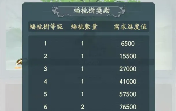 蟠桃树升级可以获得蟠桃,每个妖盟活跃人员数量以及氪金情况都不太相同,所以没法固定计算,只能说一下关键等级节点所获取体力数量: