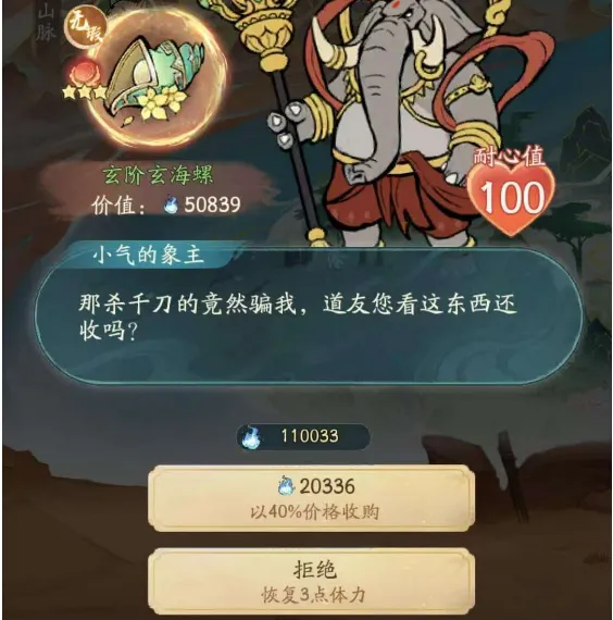 ③ 轮回秘境获得法宝的地方一般有几类,封印类、镇压类、交易类、赌石类!那么碰到封印类以及镇压类还有交易类获取法宝的时候,我们故意选择成功率最低的,故意失败(如果成功也比选2、3赚不是)!这样就能保证我们背包没有太多的低品阶法宝!