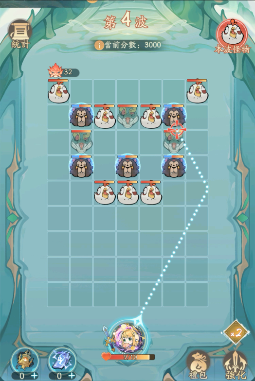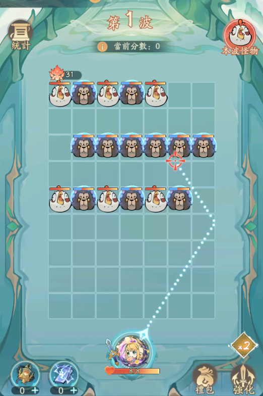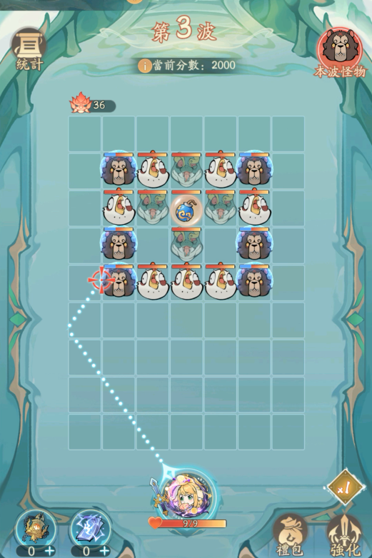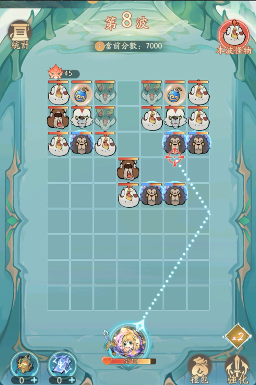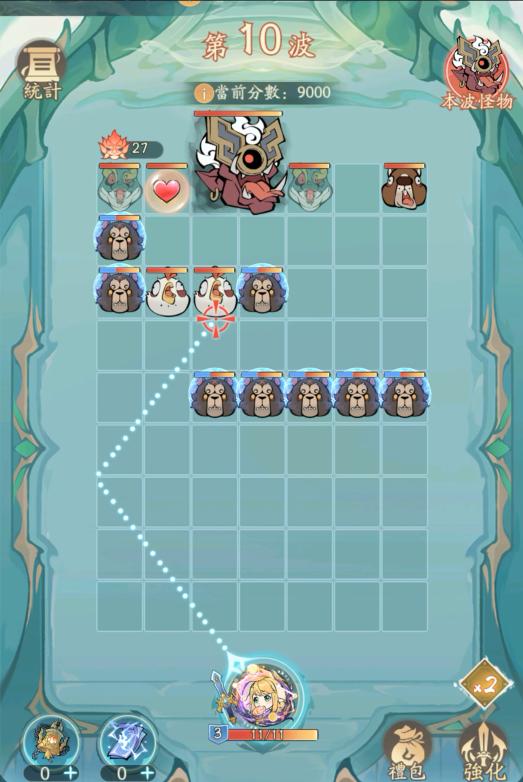 🎮第九波首次弹射角度推荐图参考,这波我试过往左边俩个盾熊中间弹,效果不如往右边这个角度好