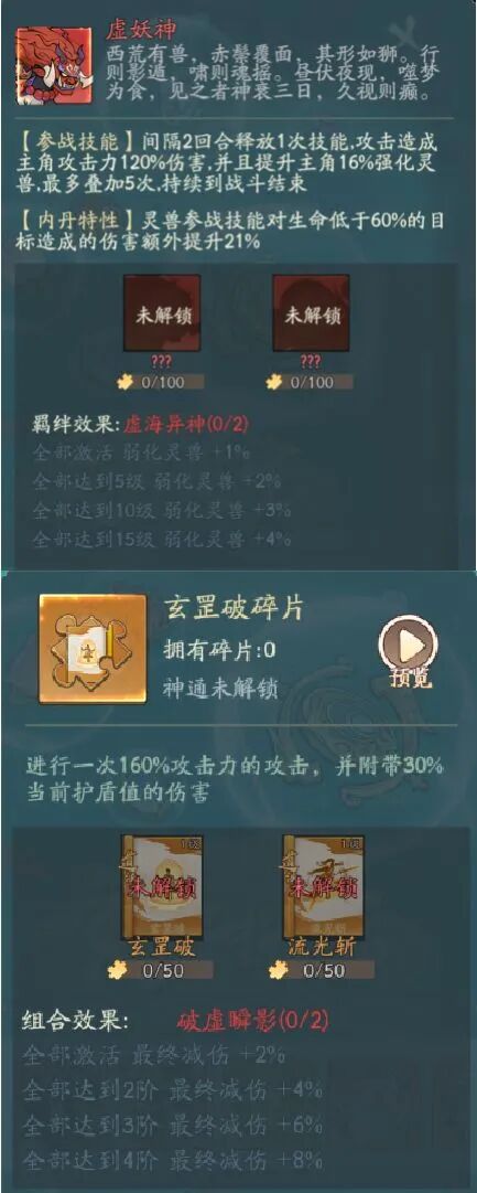 🌟内丹特性:灵兽参战技能对生命低于60%的目标造成的伤害额外提升21%。