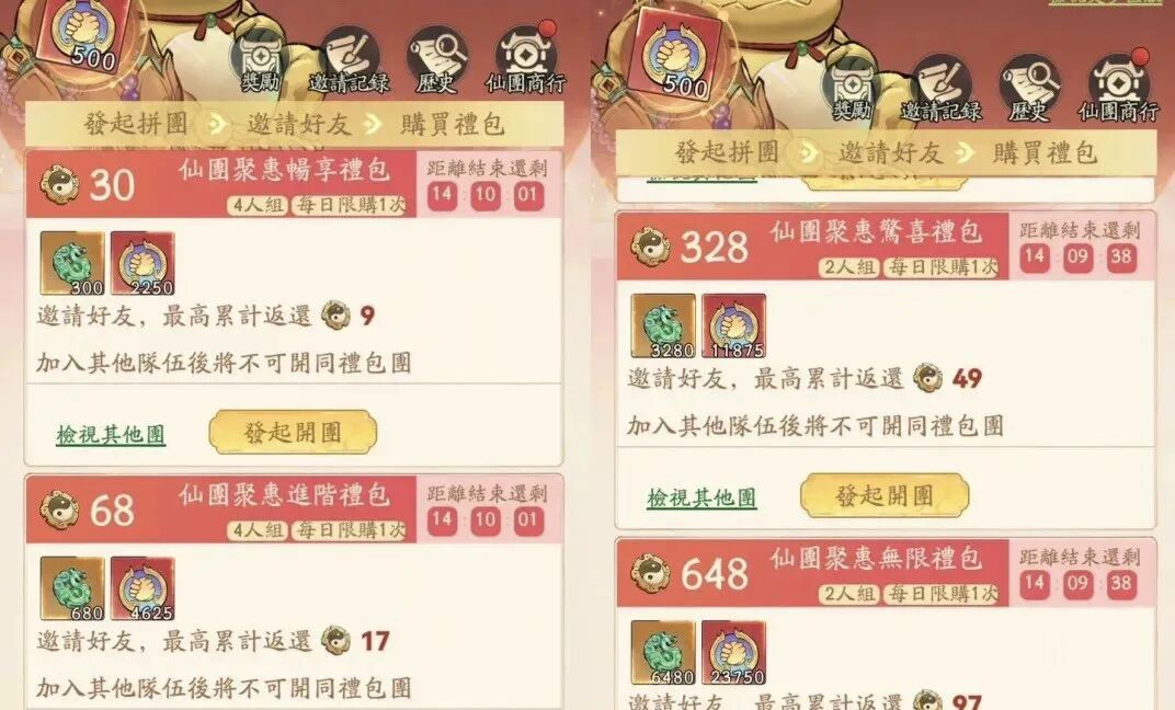 注意事项:这活动有一个坑,那就是你氪了以后没法退队!所以你要氪的话要不自己当队长,要不加入队长已经把礼包买的队伍。不然你氪了其他人不氪没法领反利!一定要注意这点。不然踩坑了!