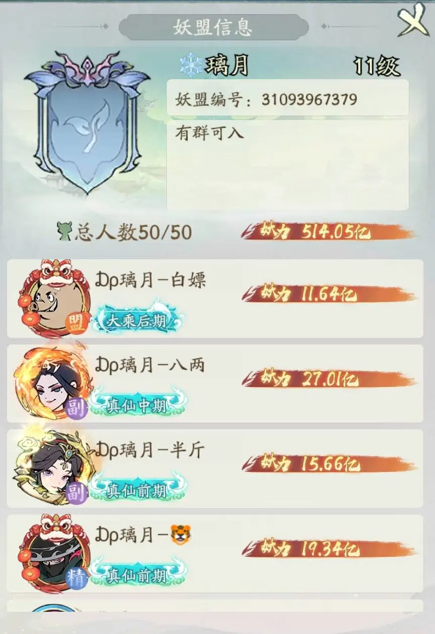 🎮战力低的可以考虑打把指定牌子去打低战盟,在开始挑战前,查看分组里面的妖盟哪个妖盟的妖力情况弱一点挑他用指定令牌打。