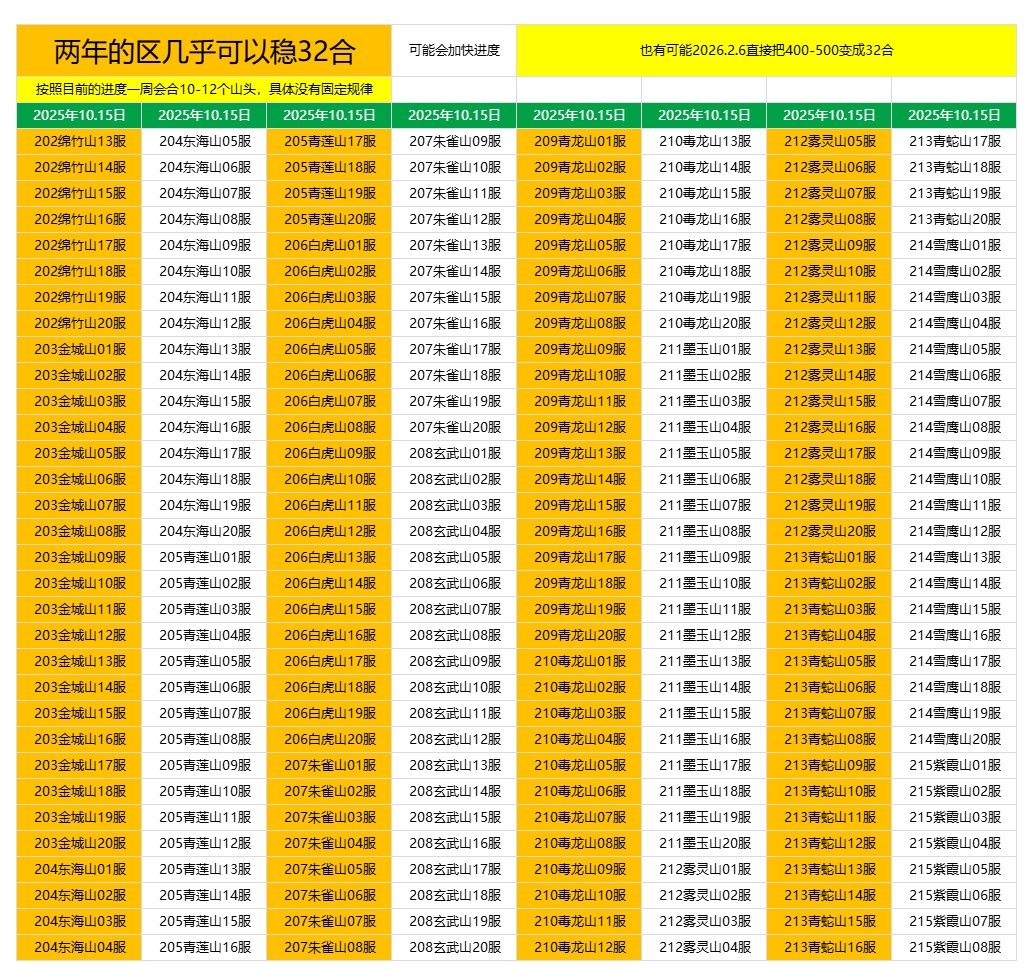 🎮400-500山头的玩家如果没有太大变动的合区规律就只能等过年那会可能会出现大规模合区,主要还是看策划,希望和去年一样过年合到快500山头,500山头后的够呛能轮到。