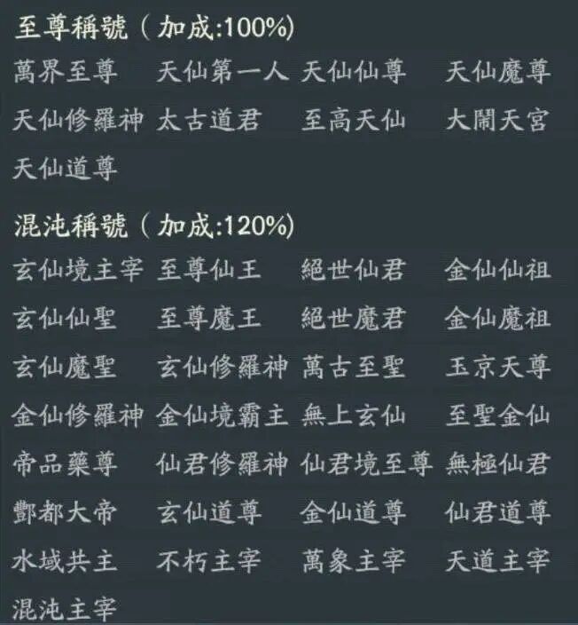 🎮合体-大乘-真仙-天仙-玄仙-金仙-仙君,这几个称号应该是新增的活动诸仙证道活动。