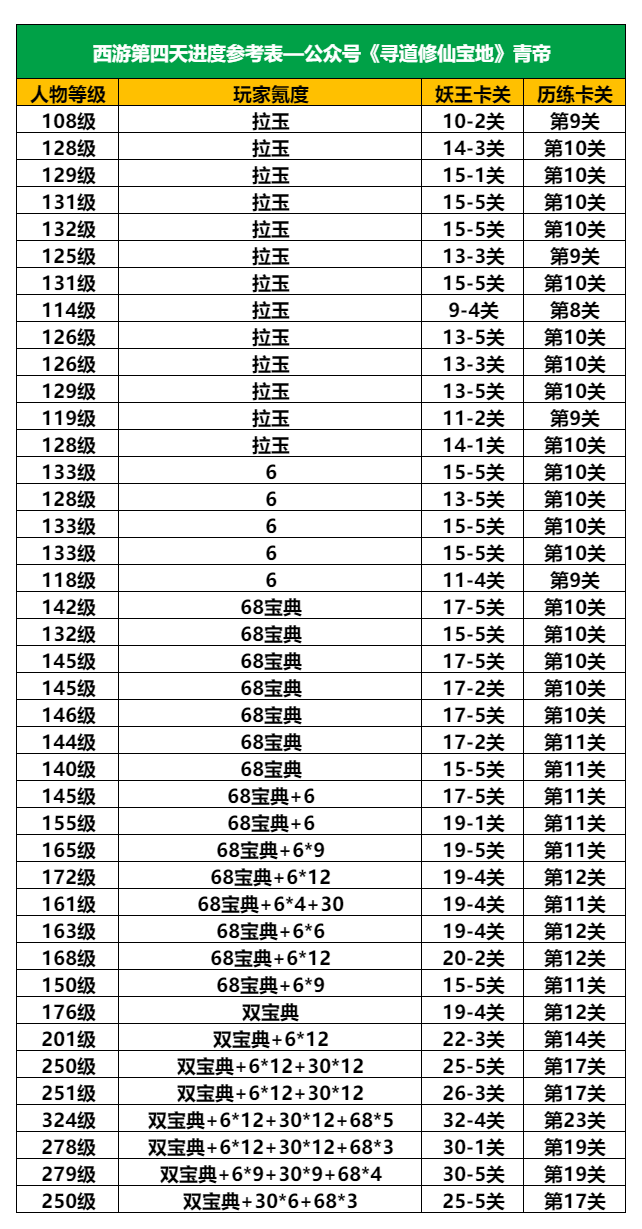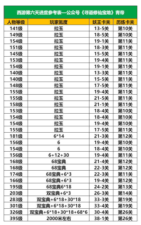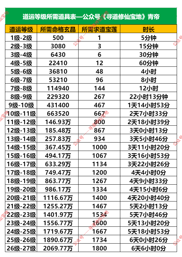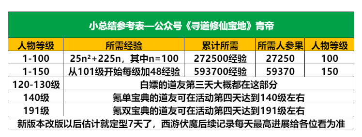 以下为统算数据,就是会与各位道友的实际情况相差几级,前后浮动都有,其他档位具体的可参考表格数据