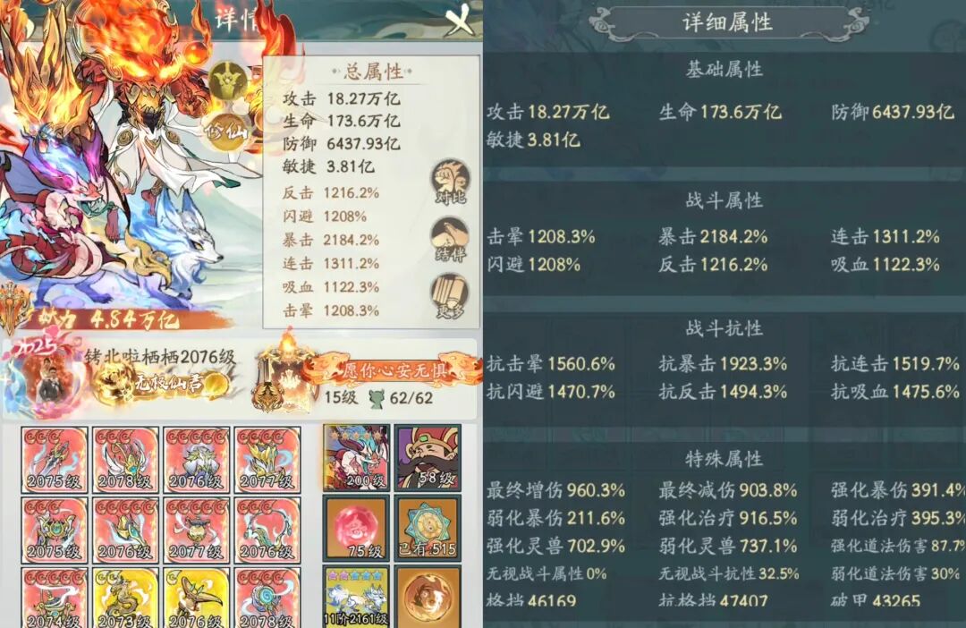 2️⃣ 账号信息:2076级(仙帝后期)、4.84万亿!增伤960、减伤903!仙帝后期就拥有近5万亿的战力,硬件都特别高!500多区比很多老区的超级大氪战力增减还要高!