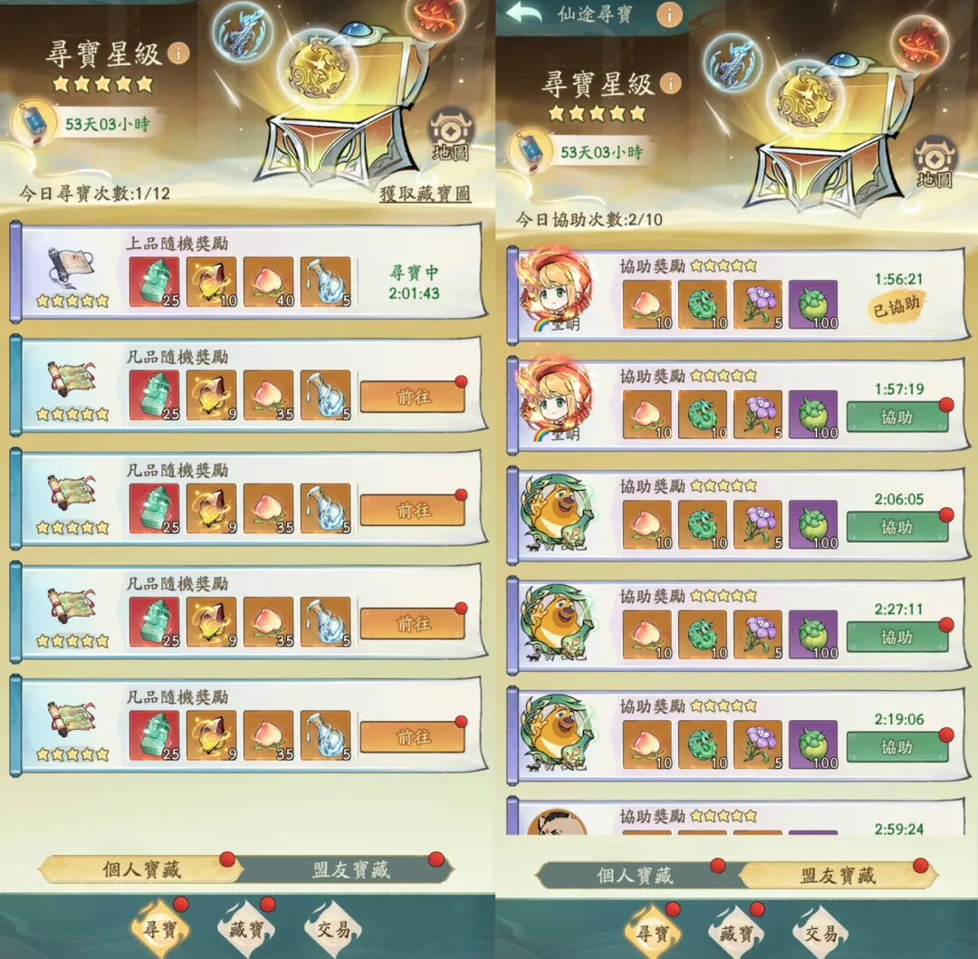 3️⃣ 宝藏装备:这个日常活动有一套自己的战力系统,挖到了装备可以给自己装备上!挖出来的仙石则可以兑换装备,以及购买一些材料!