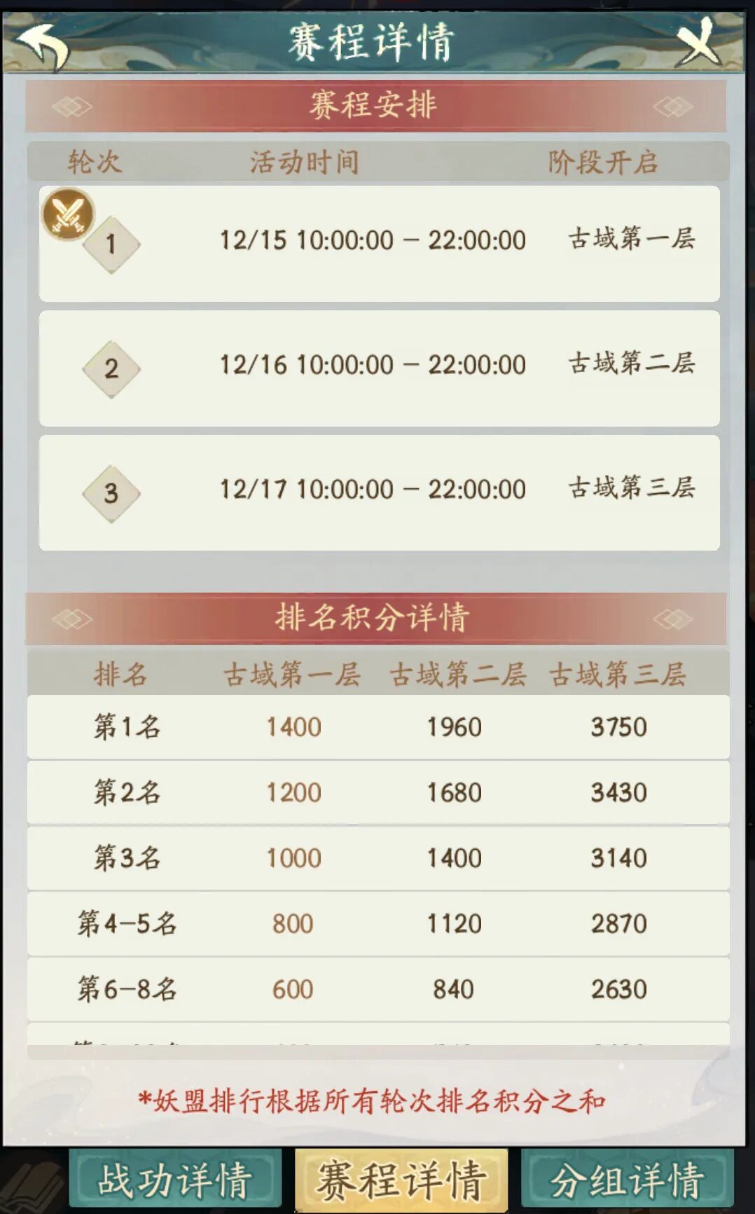 2.仙魔御礼礼包:对战胜利时灵力消耗减少10%,冲妖盟排名建议购买;妖盟争第一需提升聚灵坛等级(领更多归灵宝玉),且前两天至少拿1次第一、1次第二,第三天决战争冠。