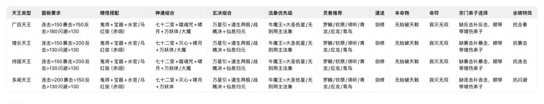 各位道友好!四大天王玩法的妖盟击败速度,直接影响后续挑战杨戬的伤害加成。本期针对不同天王的特性,整理了详细打法配置,新区、老区玩家都能直接套用~
