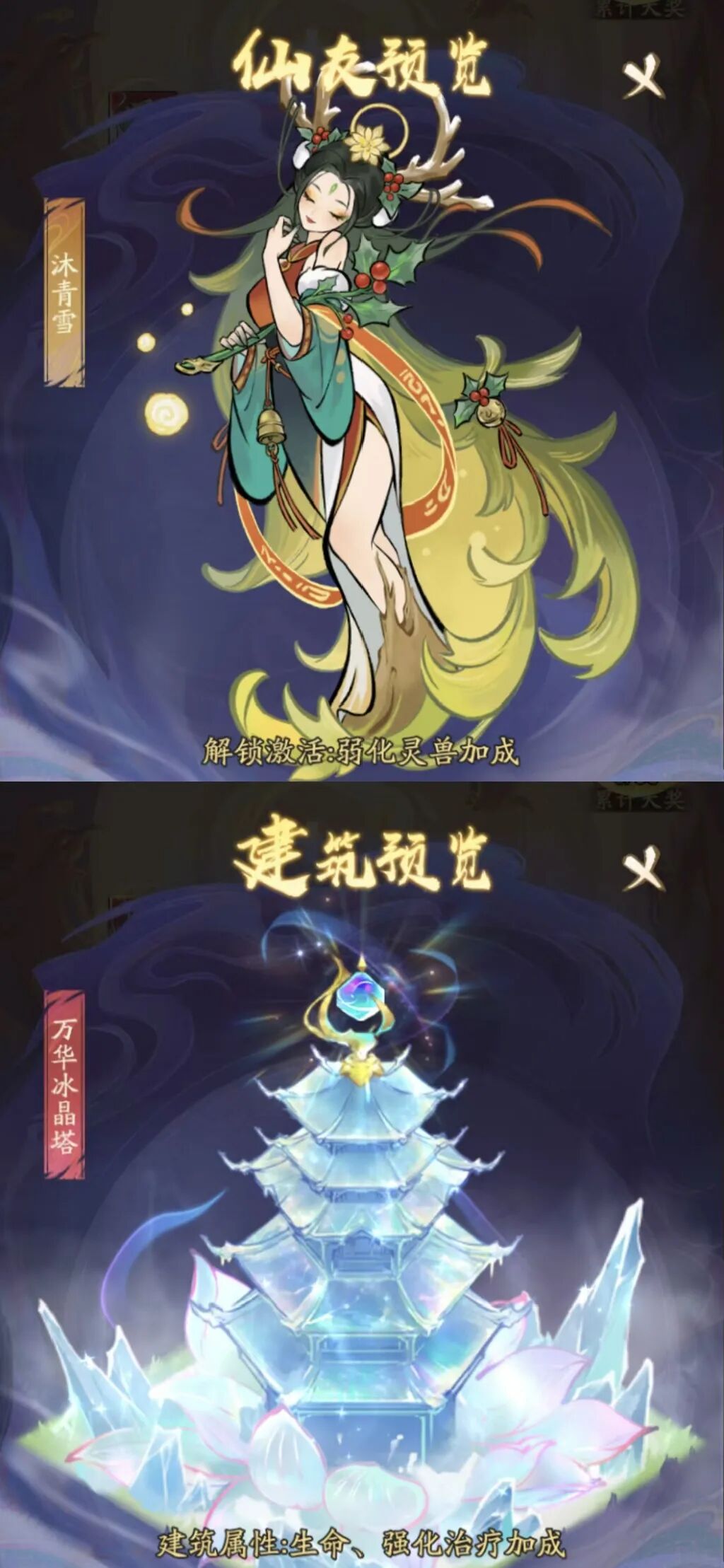 本期飞剑夺宝新增仙友:沐清雪(弱化灵兽),返场精怪:镜花(弱疗加燃烧),主题仙缘返场以及神话仙居建筑:万华冰晶塔