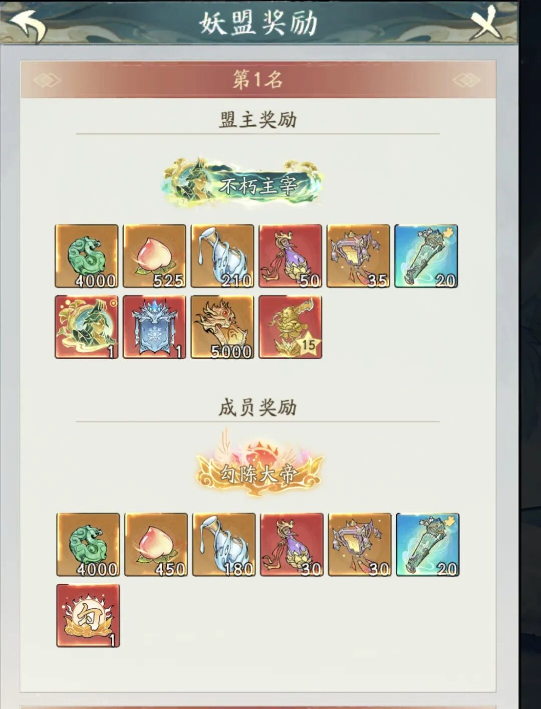 妖盟最高奖励 : 第一盟全员大帝称号