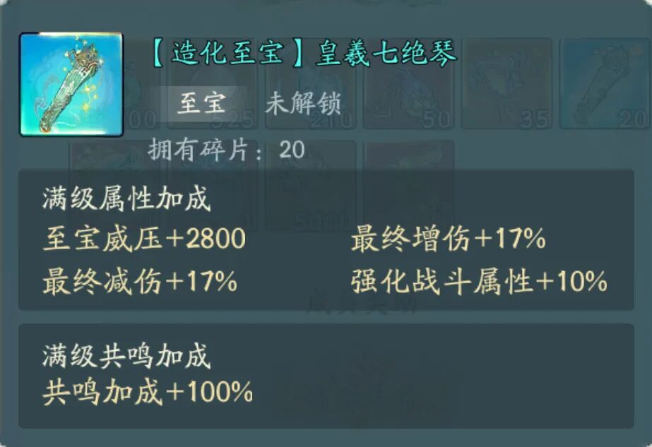可获取碎片区间:20-30个皇曦七绝琴碎片