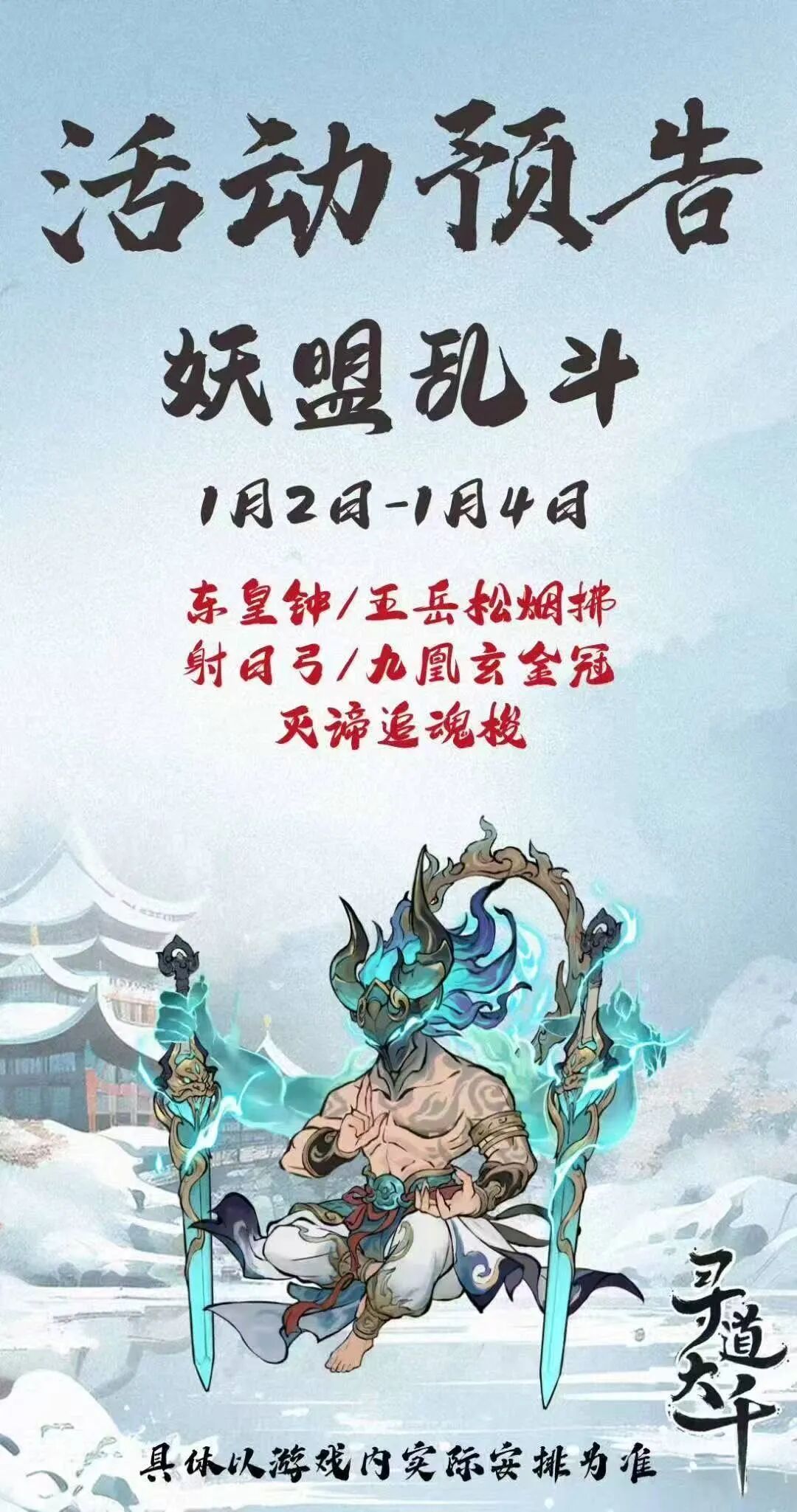2.法宝解锁留存:解锁东皇钟/射日弓前,提前存乱斗令/挑战令(最少存挑战令),待法宝开放后再使用。