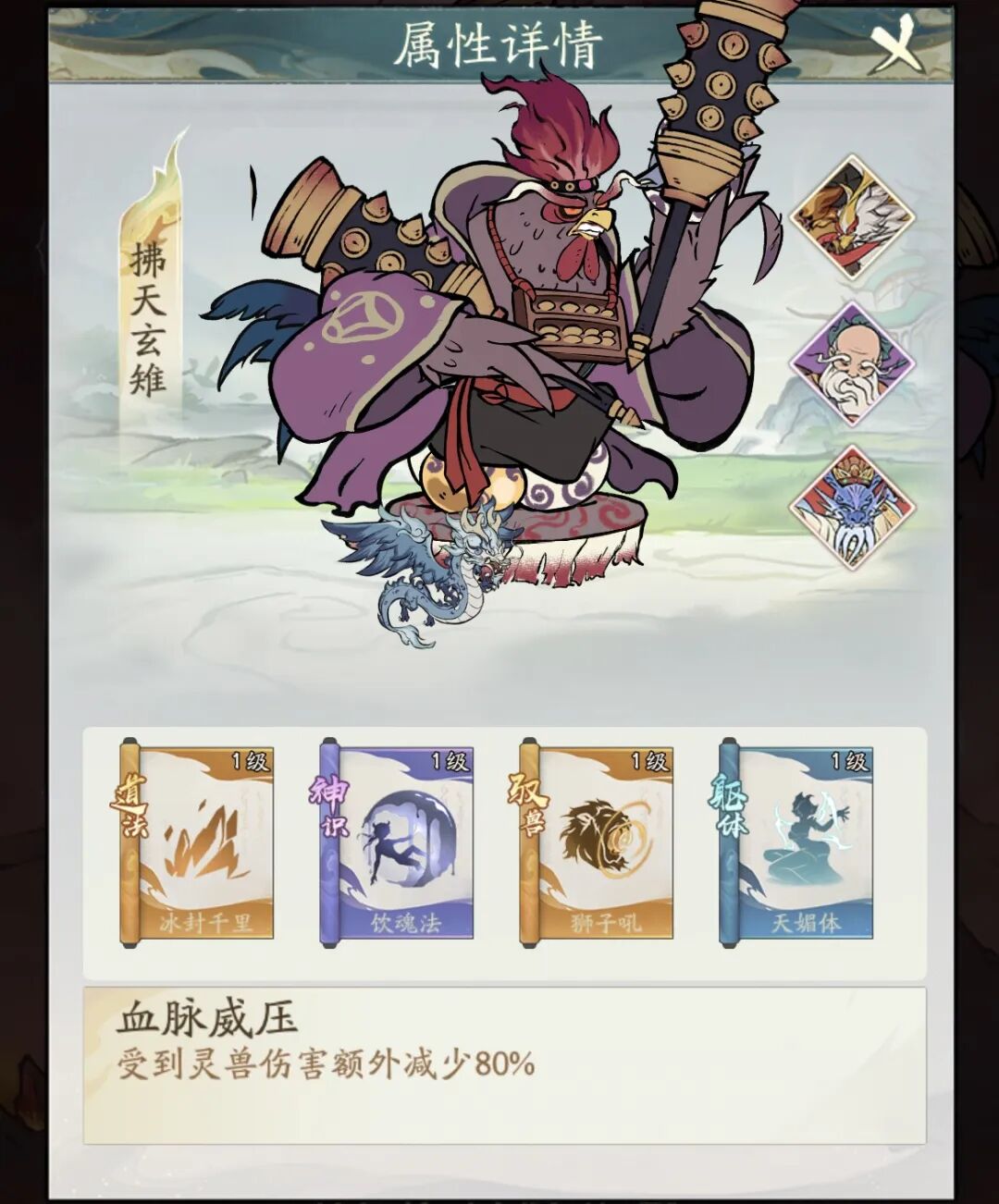 ⑤ 神通:七十二变、噬魂咒(怪物带有冰封,阻止怪放冰封影响我们输出节奏)、啸月/丹心同并/碎心法(根据宠物带不同)、万妖体/大魔邪身!