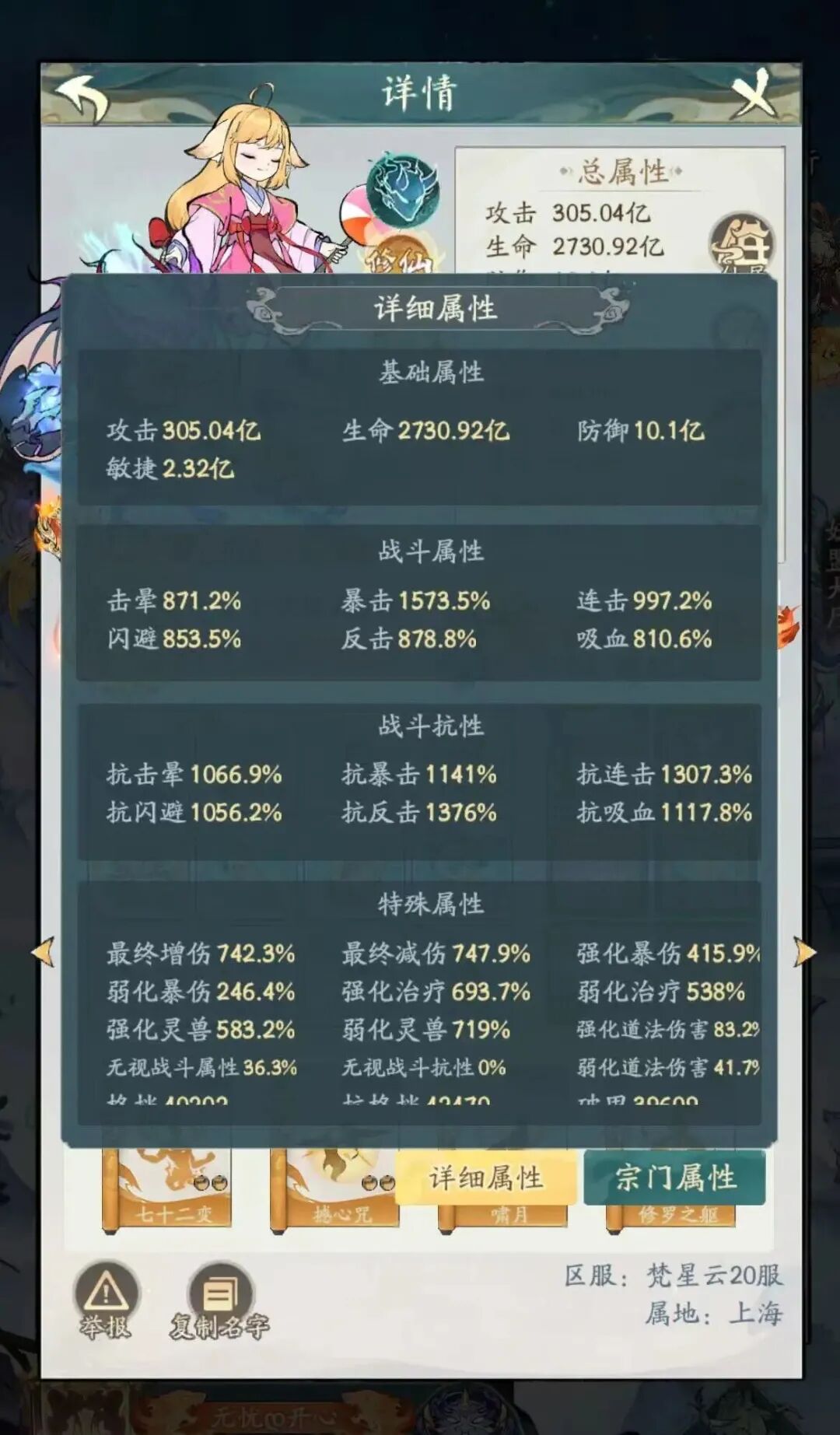哈喽,道友们,云区简直卷,卡级怪物层出不穷,这不,又有道友投稿卡级怪物,来自梵星云20服天仙卡级玩家,增减伤均高达700+,碾压同境界,让我们来看看这个道友有多夸张~