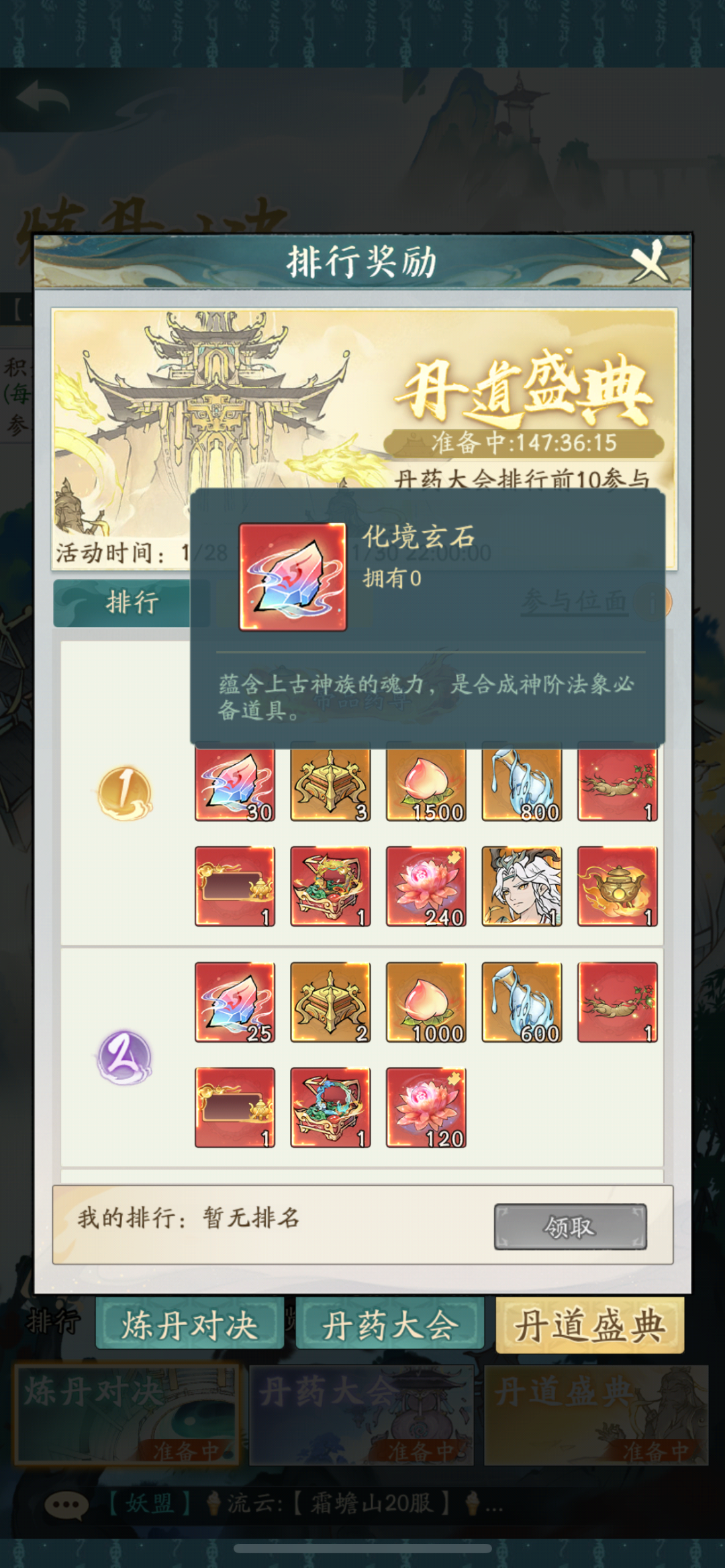 按丹道盛典档位逐步投入,建议至少到128次开丹会档位(2814元),确保进入排行榜前20。
