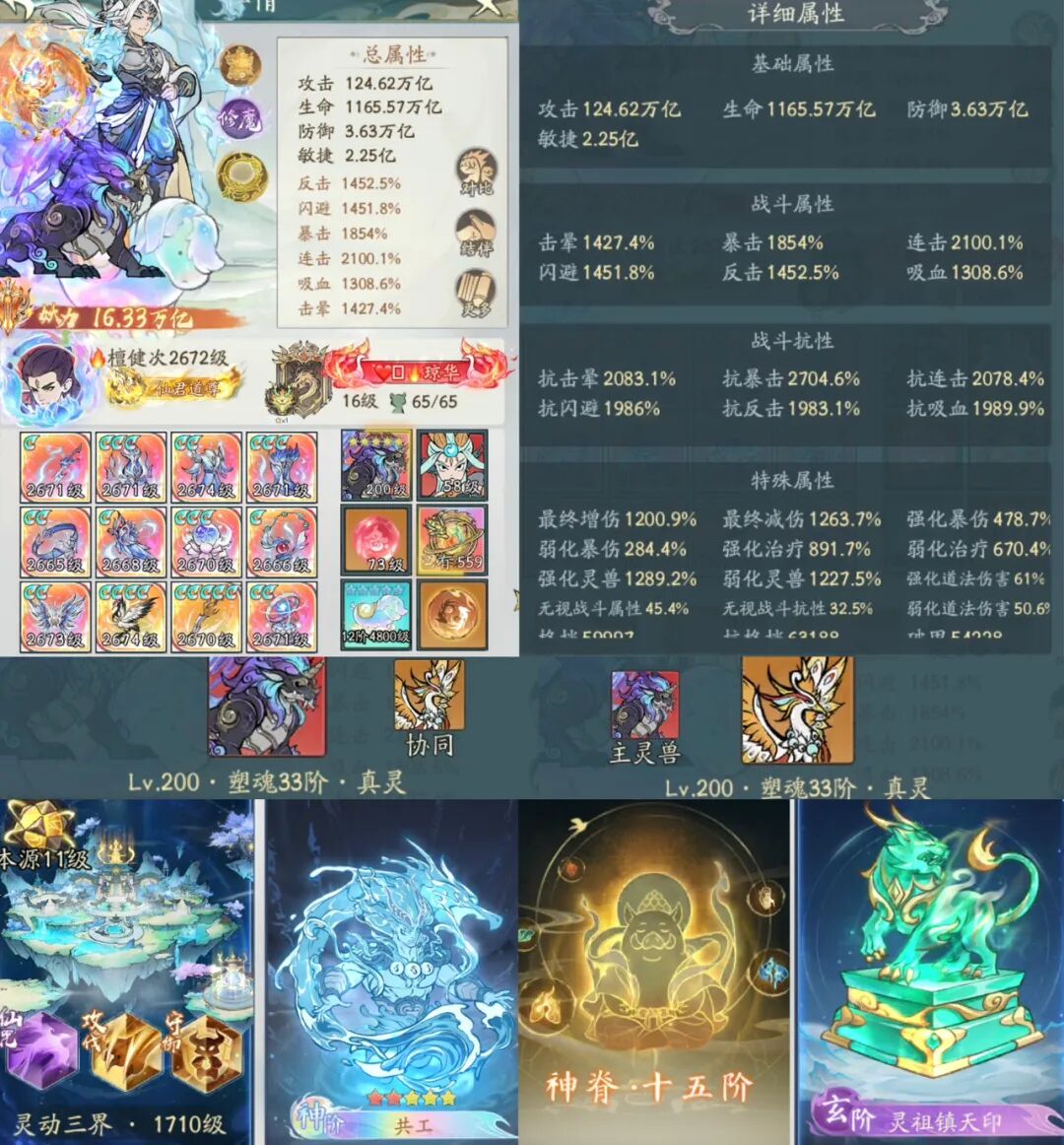 整体面板非常强,但其实和以前相比也算减氪了,硬件稍微还是略低。特别是法象、神脊、本命物。