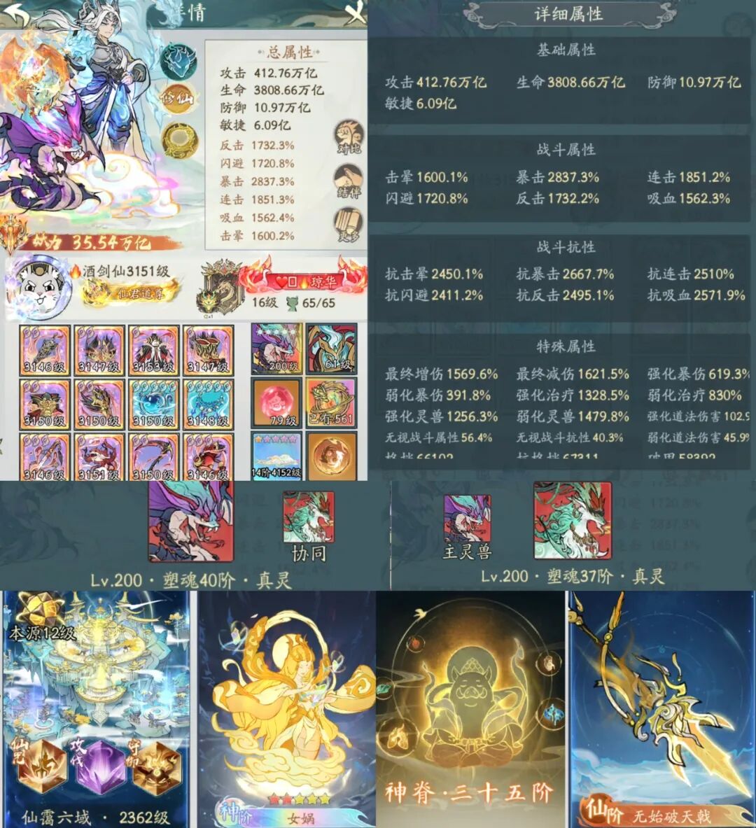 整体面板也很豪华,诸天也是除了酒剑仙以外的第二人!其实二哥的硬件相当极端,小世界、法象强的离谱。反观神脊与本命物又等级很低!双子星对于神脊和本命物等硬件,都不是很感冒啊!