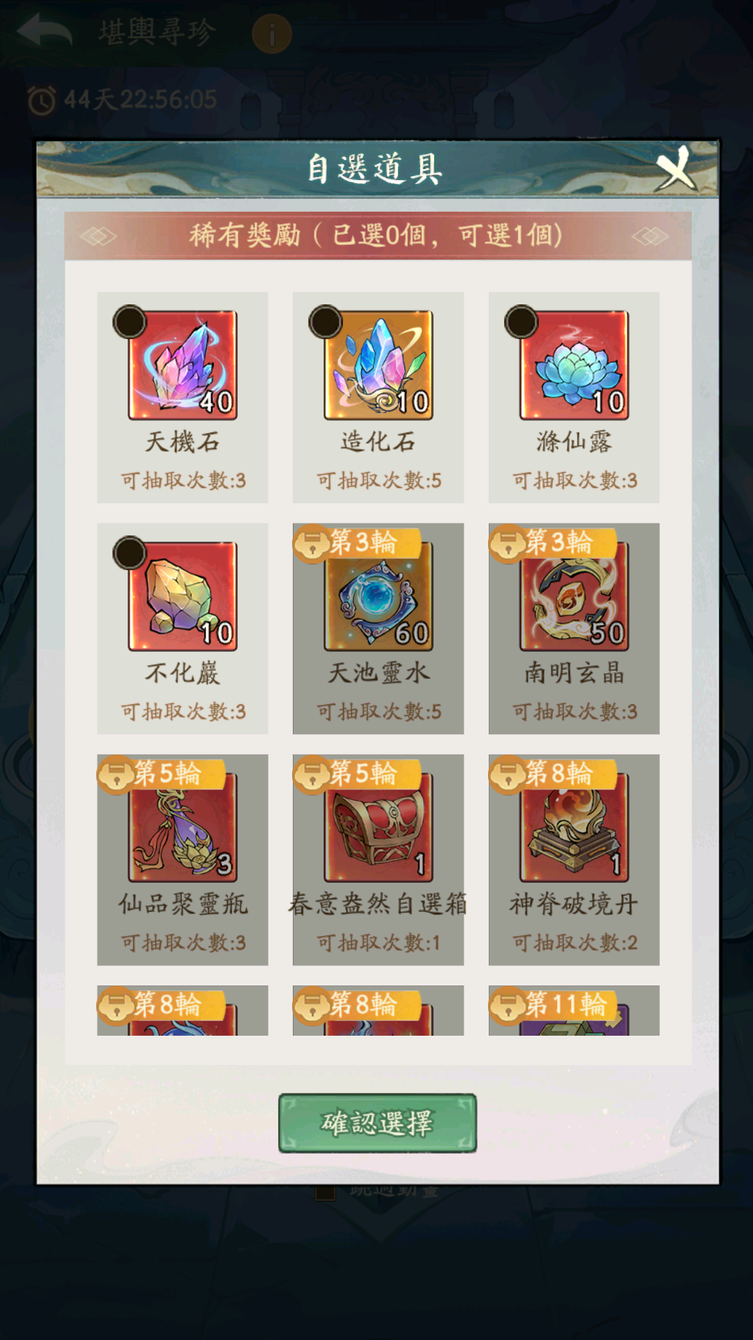 🎮堪舆寻珍:寻龙盘抽奖类似妖市抽奖,有自选大奖;