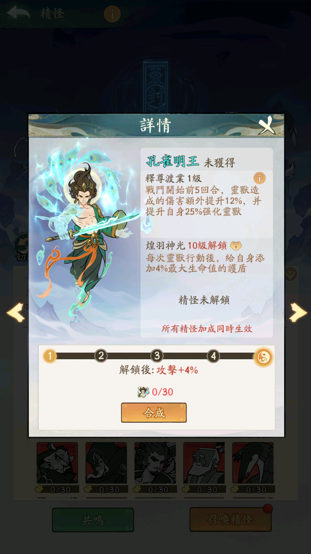 🎮洪荒精怪:战斗开始前5回合,灵兽造成的伤害额外提升12%,并提升自身25%强化灵兽;