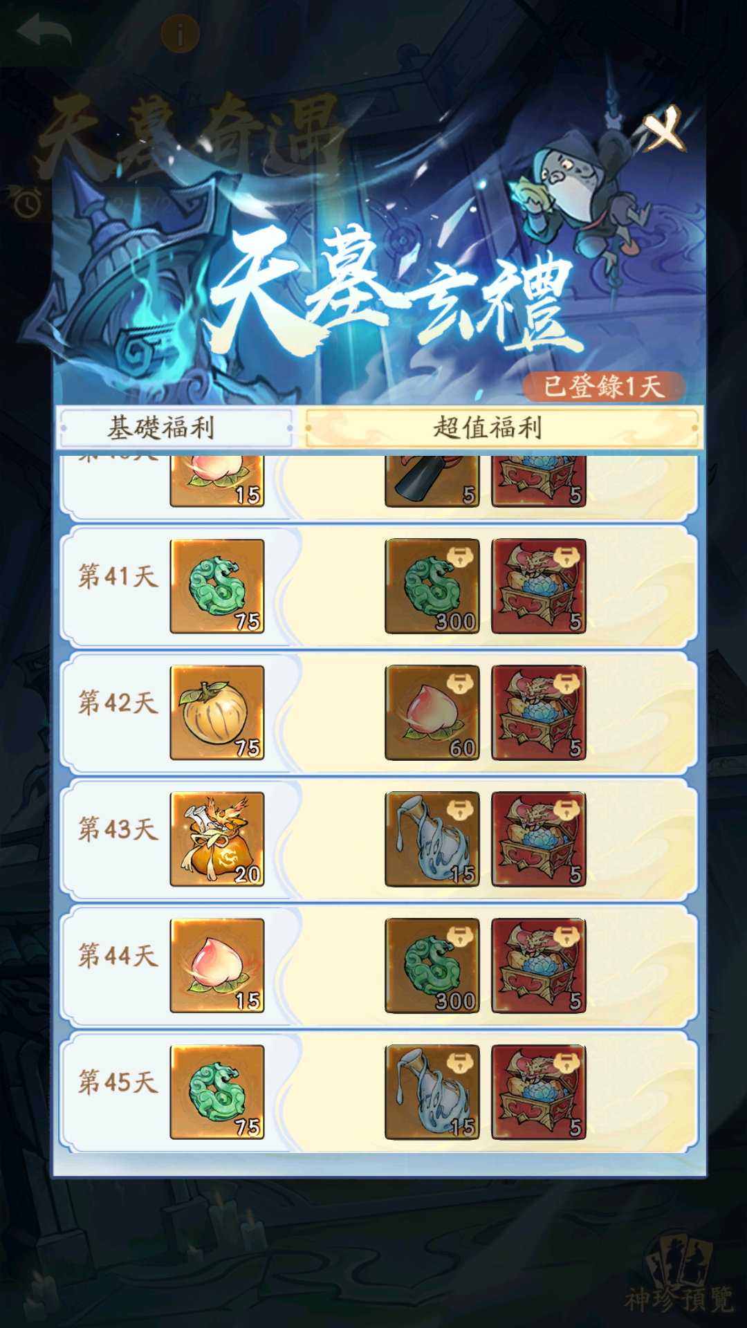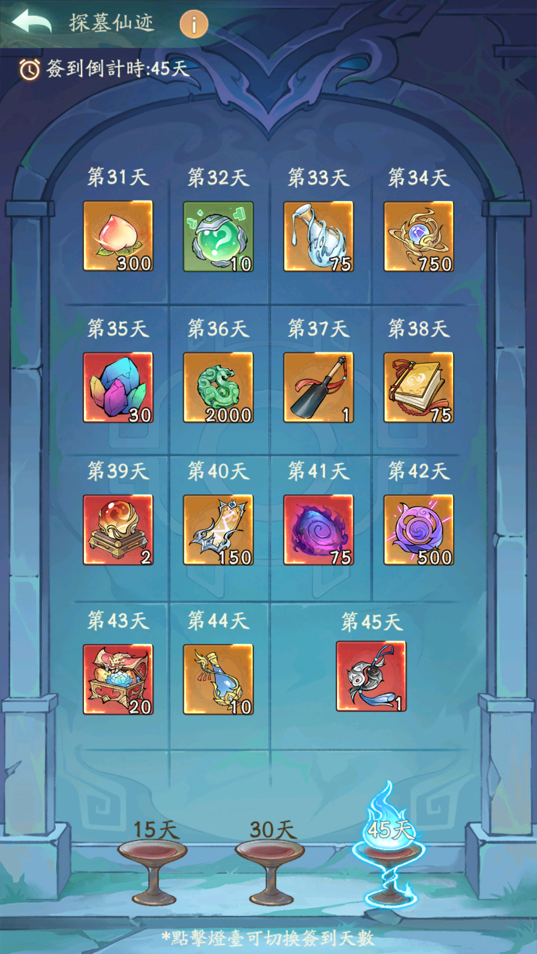 🎮探墓仙迹:签到福利共 45 天,位面时间到达对应天数即可签到;
